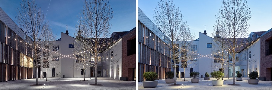 Auf den historischen Grundstücken der Stadthäuser in der slowakischen Stadt Trnava ist ein neuer Platz entstanden. Seine besonderen Merkmale sind der nur 4,5 m breite Grundriss und die meist einseitige Orientierung. Der Raum des Innenhofes ist von 4 alten Bäumen umgrenzt, zwischen die wir mobile Pflanzgefäße in 3 verschiedenen Farbtönen gestellt haben. Der gesamte Komplex ist über drei separate Eingänge zugänglich. Die Pflanzkübel kann man je nach Bedarf bewegen, damit bei kulturellen Veranstaltungen genug Platz für eine Bühne und ein Zuschauerraum geschaffen werden kann.