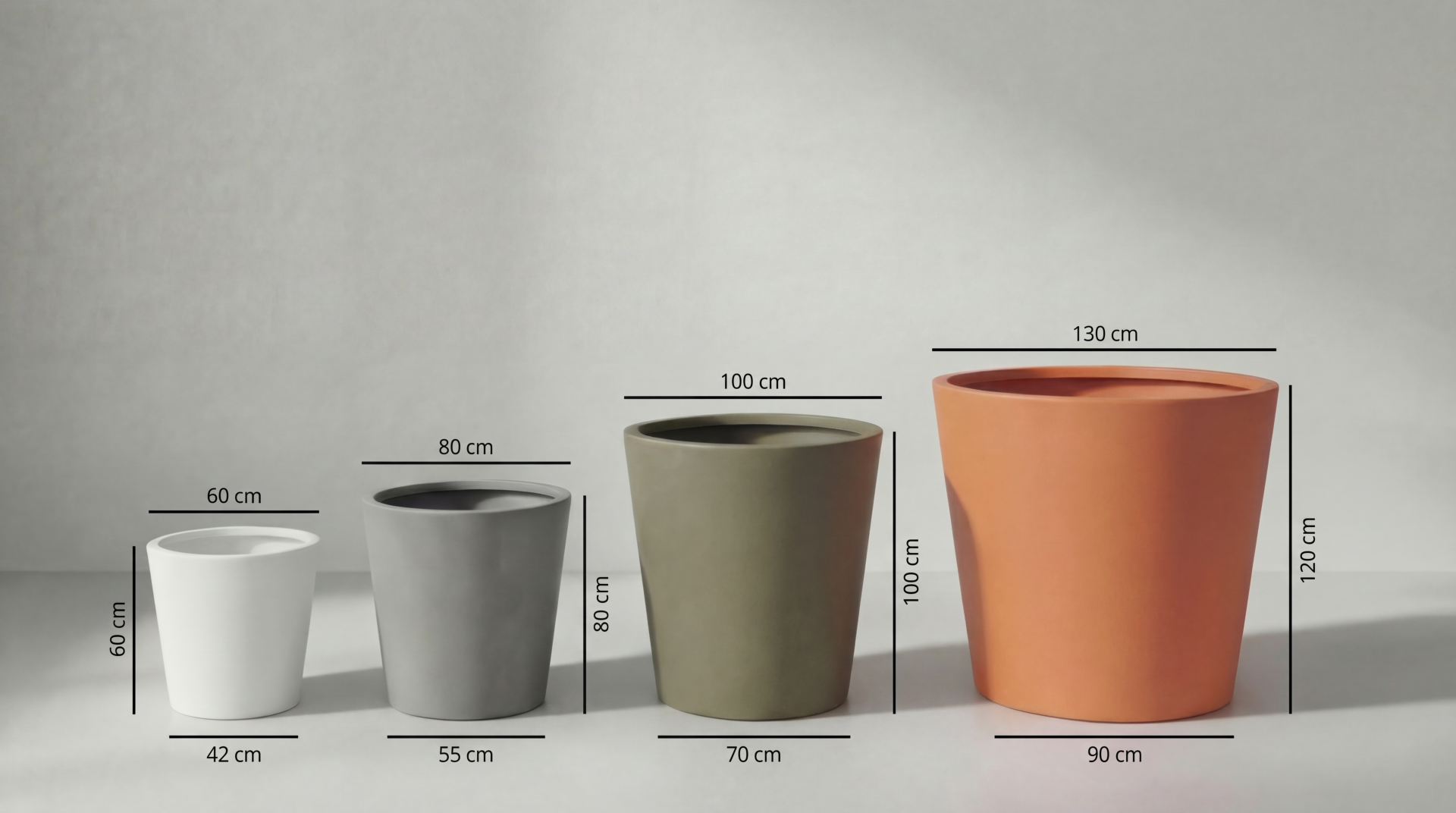 Konische Blumentöpfe von CALIPPO, eine moderne Alternative, die in Form und Farbgestaltung zeitlos ist. Große Blumentöpfe verleihen dem öffentlichen Raum ein neues Gesicht und tragen zu mehr Lebensqualität bei. CALIPPO-Blumentöpfe sind nicht nur eine moderne Ergänzung für Stadtmöbel, Apartmentterrassen und Hotelräume, sondern vor allem die richtige Lösung für Abwechslung.