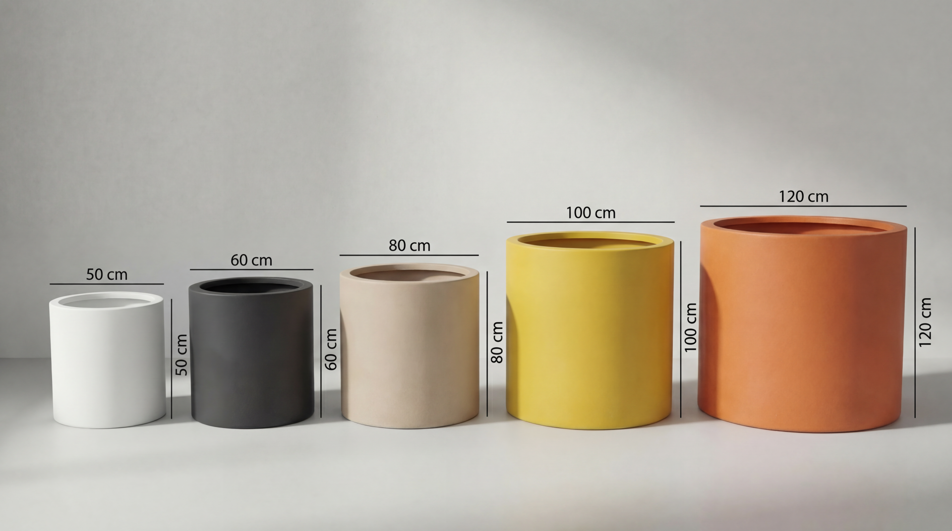Blumentöpfe CYLINDER, schlichtes und zeitloses Design. Die Pflanzgefäße sind in vier Größen erhältlich und bieten die Möglichkeit, sie zu kombinieren und einen abwechslungsreichen Raum im Innen- und Außenbereich zu schaffen. CYLINDER-Pflanzgefäße sind nicht nur ein ästhetisches Element auf privaten Terrassen, sie bieten auch praktische Lösungen für öffentliche Räume, wo sie als stilvolle Stadtmöbel dienen können.