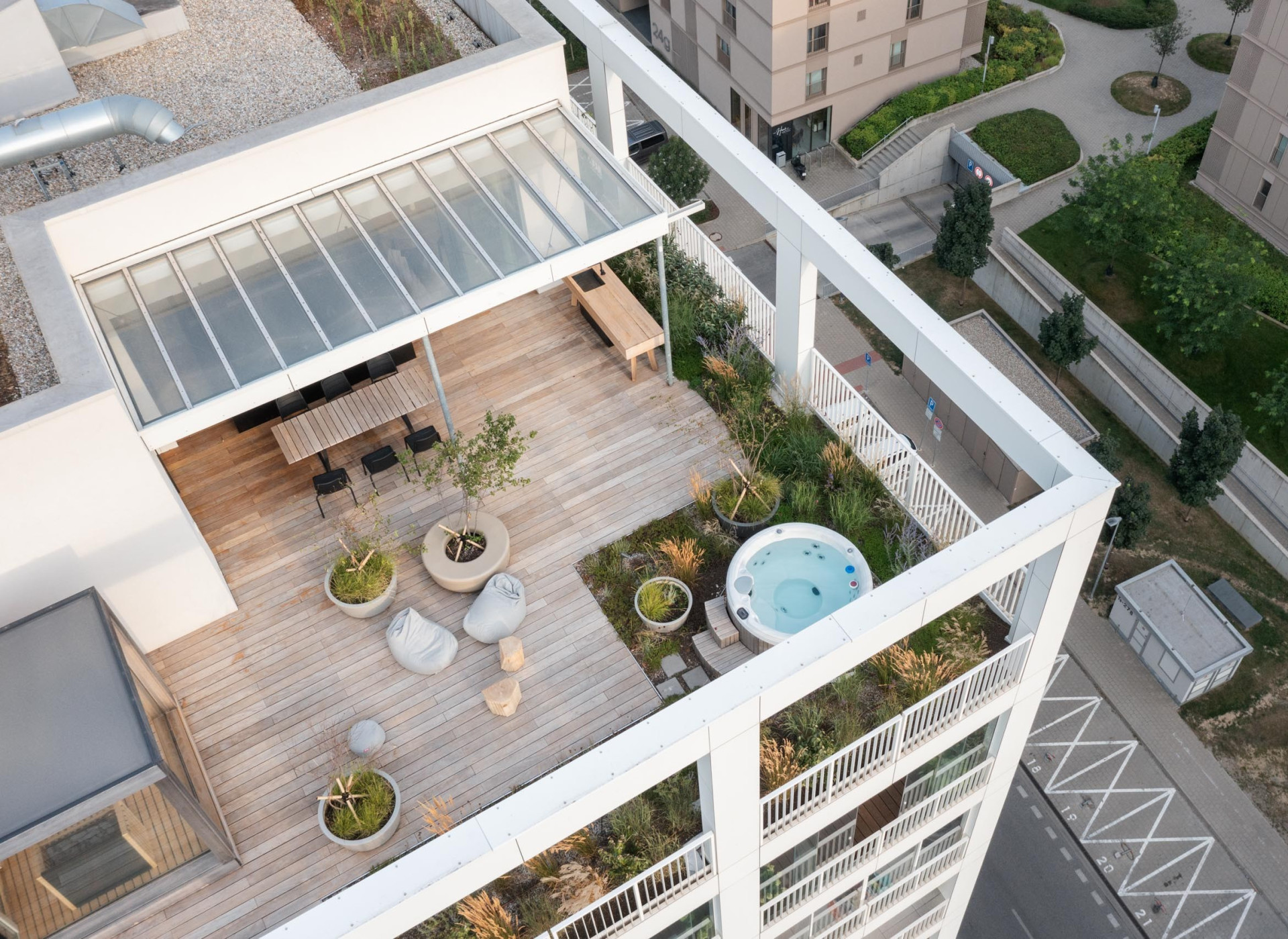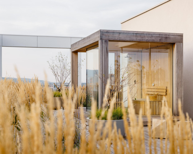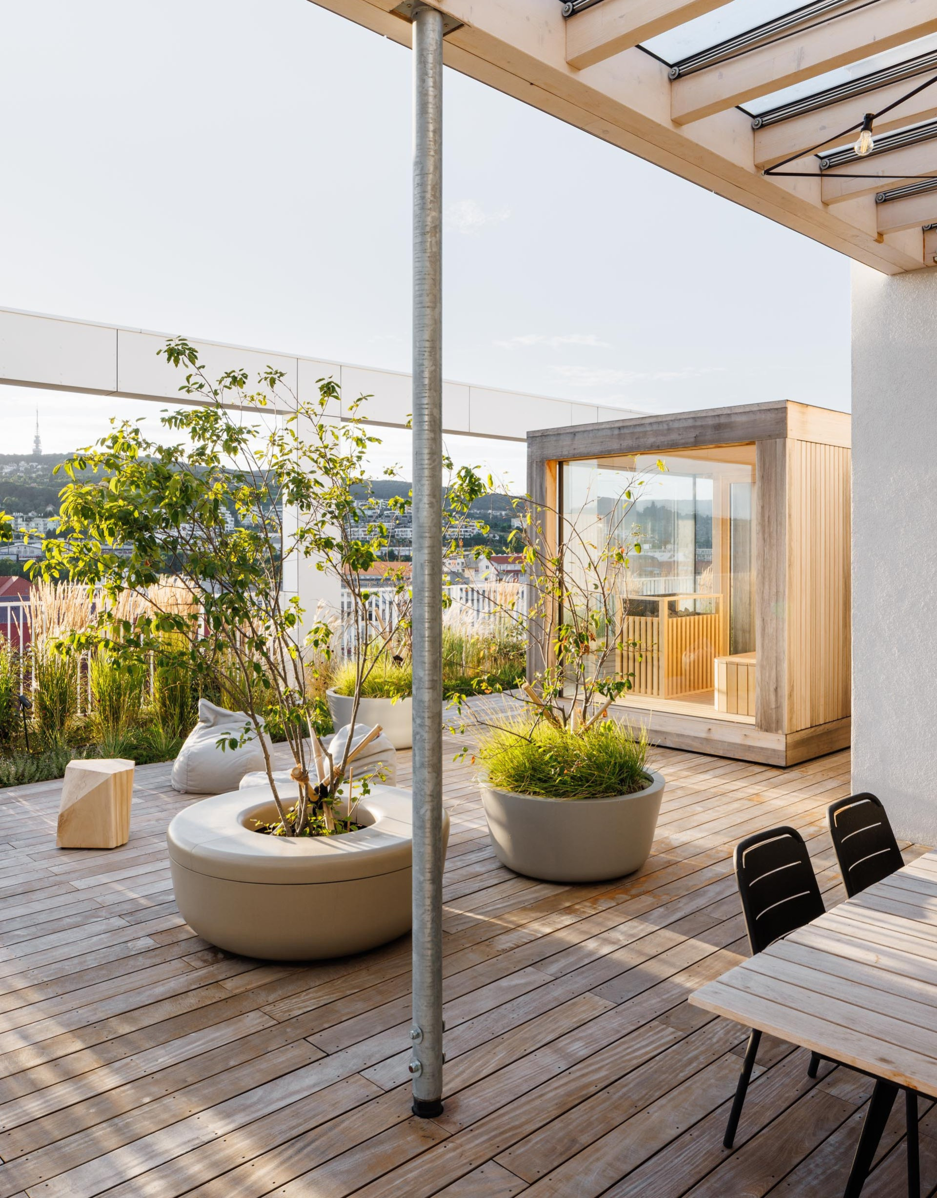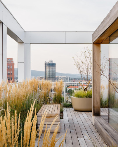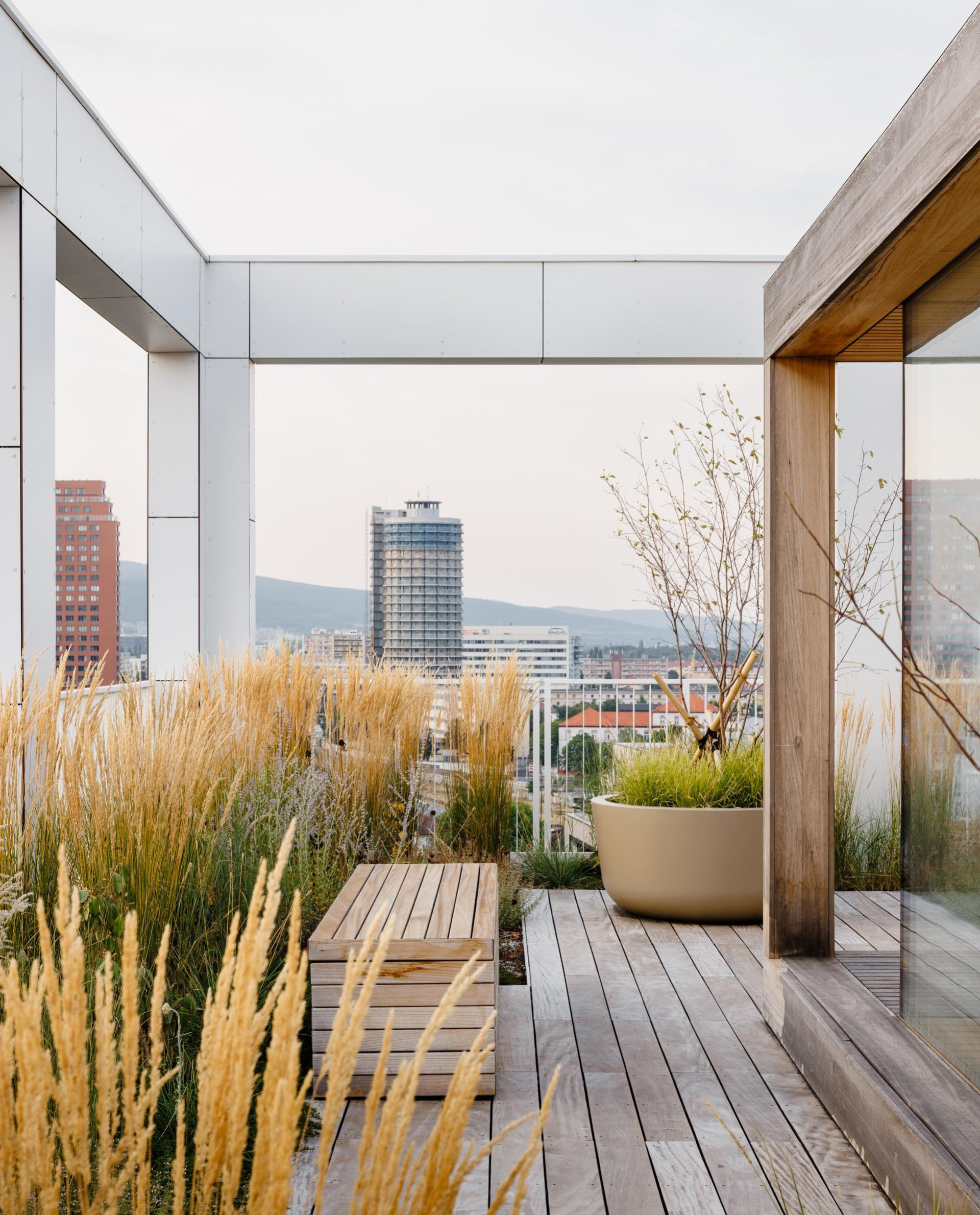 Der private Eigentümer einer Dachgeschosswohnung in einem Neubau in Bratislava entschied sich für die Installation von maßgefertigten Pflanzkübeln, die seine großzügige Terrasse in eine Oase der Ruhe und Eleganz verwandelten. Die Auswahl großer Pflanzkübel aus Glasfaser in einem angenehmen Beigeton schuf einen harmonischen Raum, der ideal zum Entspannen ist. Im Rahmen der Umsetzung wurde der moderne und praktische Blumentopf RELAX verwendet, der die Funktion eines Blumentopfs und eines Sitzelements kombiniert. Dieses innovative Element verleiht der Terrasse nicht nur einen ästhetischen Mehrwert, sondern erhöht auch ihre Funktionalität.