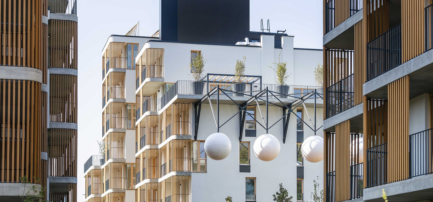 und wir sind sehr froh, dass das gesamte Projekt ohne Kompromisse und Zugeständnisse realisiert wurde. Im Stadtviertel Pasienky der slowakischen Hauptstadt Bratislava ist ein schöner NIDO-Wohnungskomplex entstanden, der dank der differenzierten Gebäudehöhen und der Holzverkleidung der Fassade ein angenehmes neues Umfeld schafft.
